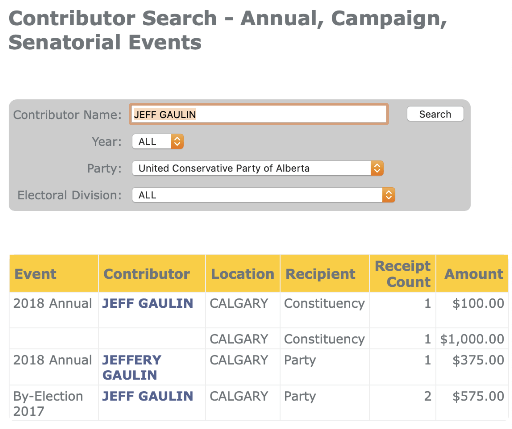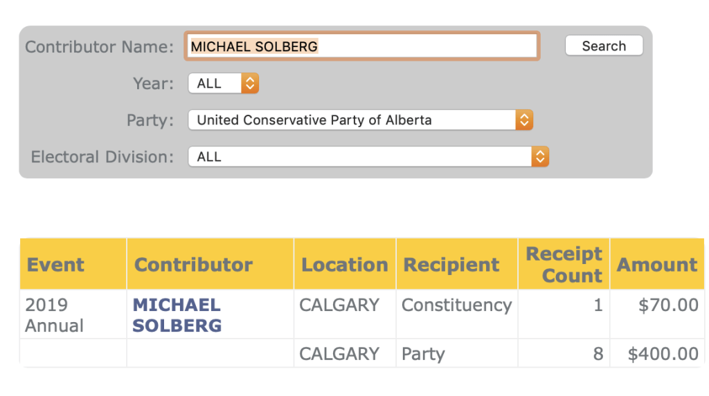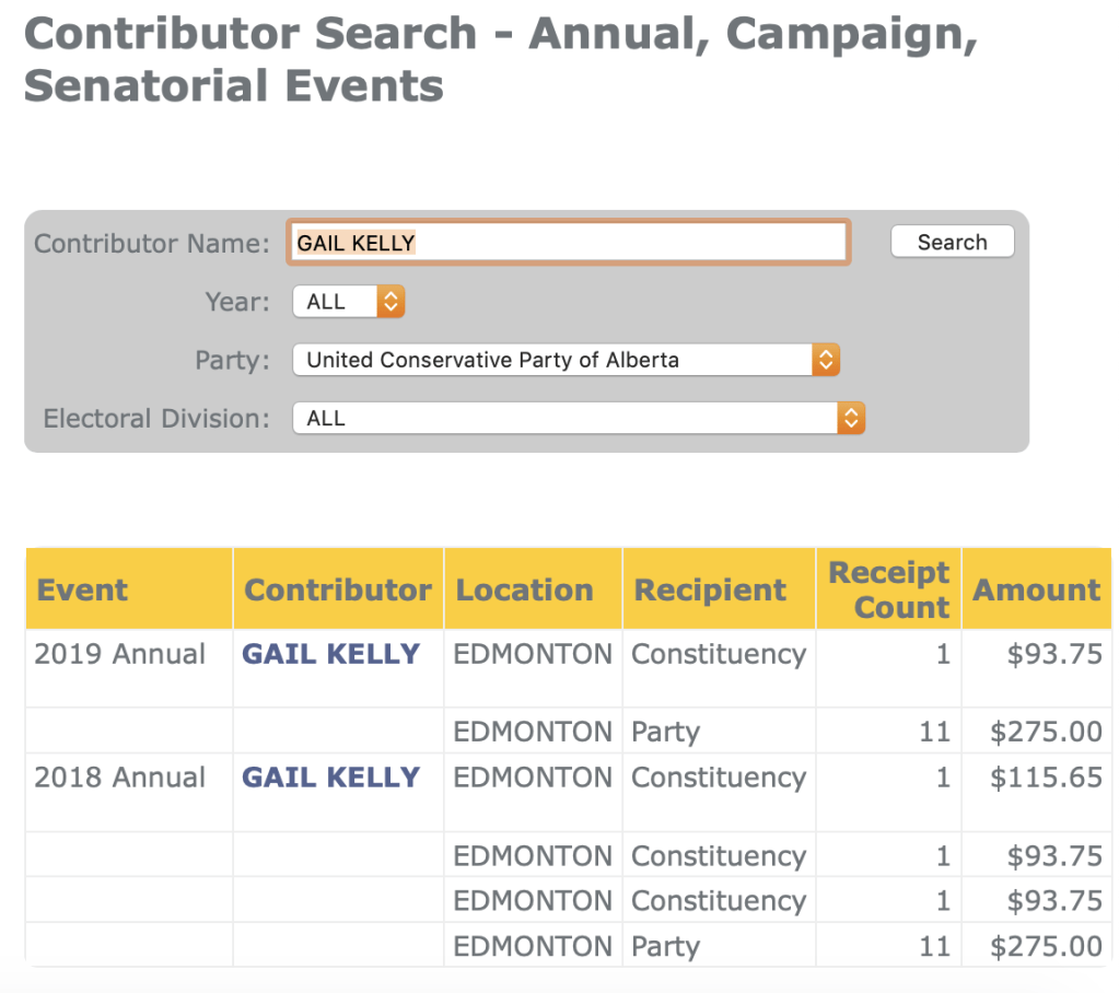 A list of political contributions by vaping and tobacco companies to the United Conservative Party.